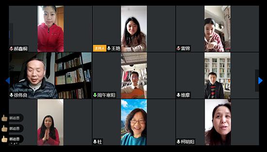 当日上午,师生们运用腾讯会议软件相聚在线上空间,由中职教研室主任王艳老师担任主持人,开始了不同于往常的读书会。乔亚兰院长首先对疫情期间读书会的开办意义发表了讲话。但愿老师为同学们介绍了书籍管理软件,分享了自己收藏的书单。之后举行了线上抽奖的互动节目,读书会气氛热烈融洽。