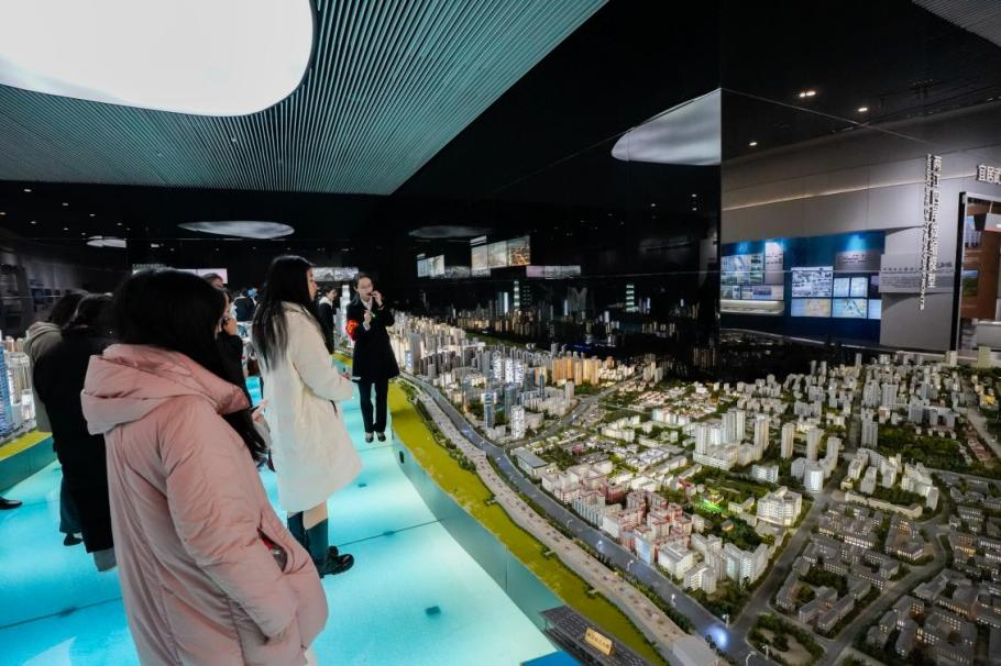 宜居武汉展区,面积约340平方米的两江四岸模型全面展现了长江一桥与二桥之间37.8平方公里的城市景观,师生们身临其境,站在“长江”之上,俯瞰江岸沿江、武昌滨江、琴台等重点功能区,了解长江主轴核心区的宏伟规划。