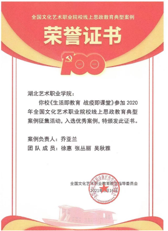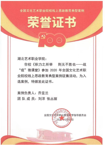 该案例已获中国艺术职业教育学会党建与思政案例一等奖。