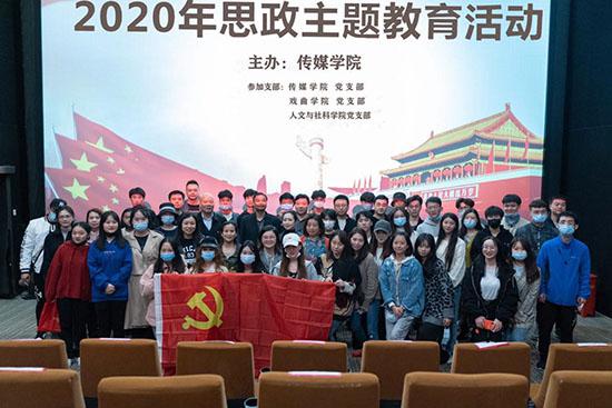 党的十八大以来,加强思想政治工作、弘扬爱国主义精神,解决“培养什么样的人、为谁培养人”的问题一直是教育事业的重中之重。为进一步增强教职工、青年学子的社会主义道路自信、理论自信、制度自信、文化自信,见证祖国的巨大变化,增强民族自豪感,培养爱国情怀,2020年10月5日,传媒学院党支部、戏曲学院党支部、人文与社科学院党支部组织传媒系优秀学生干部和优秀学生观看电影《我和我的家乡》,开展了一场颇具内涵的思政教育活动。湖北艺术职业学院校党委副书记李立海、工会主席张昉,以及乔亚兰、邱艳、李俊军、何辞英、肖邦亮、传媒学院各专业老师等其他同志出席此次活动。