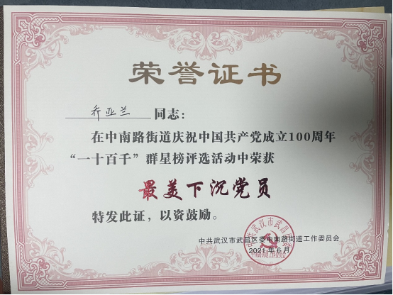 乔亚兰同志获“最美下沉党员”